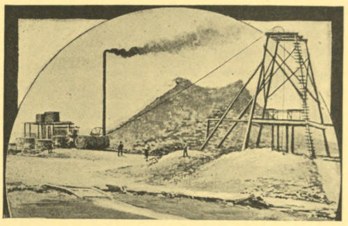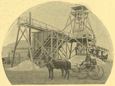 Seeing a peculiar-looking place on a hill, I climbed up to see what it was, and found a large hut composed of big flat stones. These stones were lying around in great quantities. Some men were working near, but they were Italians, and as they could not speak English and I could not speak Italian, our conversation was nil. The view from the hill was charming; the salt[321] lakes shimmering in the sun, the flat country with the grass and wild flowers, the low-lying purple hills in the background, a lovely and most peculiar colouring in the sky, the rising stacks of the mines, and the high metaphoric rocks in the distance, formed an uncommon and pretty picture. Just as I was leaving, the sun came out with unusual brilliancy, casting exquisite reflections on the glistening golden sand, which seemed to crystallise into various forms. I almost felt as if I had dropped into fairyland, but in a moment the sun hid behind a cloud and the beautiful scene was gone.
