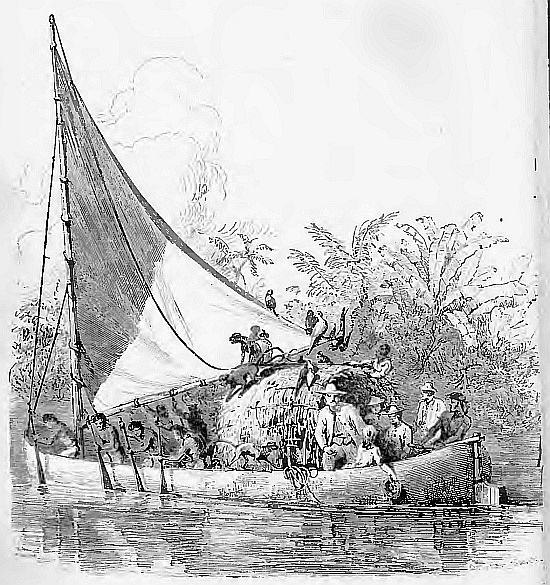 Perhaps the most singular sight on board this embarkation was the group of animated beings who composed its crew and passengers. The former, as already stated, were dark-skinned men scantily clad,—in fact, almost naked, since a single pair of white cotton drawers constituted the complete costume of each.