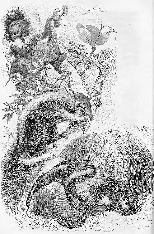The other creatures of the animated kingdom that found lodgment upon the craft were of various shapes, sizes, and species. There were quadrupeds, quadrumana, and birds,—beasts of the field, monkeys of the forest, and birds of the air,—clustering upon the cabin top, squatted in the hold, perched upon the gangway, the toldo, the yard, and the mast,—forming an epitomised menagerie, such as may be seen on every kind of craft that navigates the mighty Amazon.