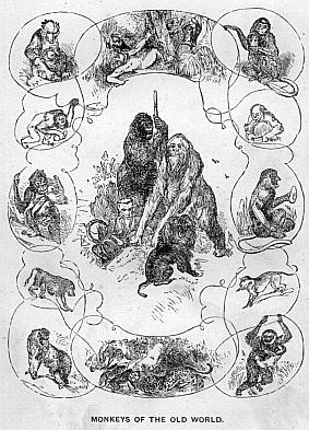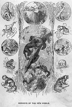 The great family of the Monkeys, or the “Monkey tribe,” as it is usually called, is divided by naturalists into two large groups—the “Monkeys of the Old World,” or those that inhabit Africa, Asia, and the Asiatic islands; and the “Monkeys of the New World,” or those that belong to America. This classification is neither scientific nor natural, but as it serves to simplify the study of these quadrupeds—or quadrumana, as they are termed—it is here retained. Moreover, as there is no genus of monkey, nor even a species, common to both hemispheres, such a division can do no harm.