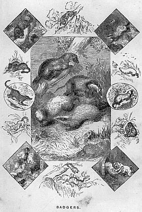 The Badger is a silent, solitary, carnivorous creature, having his representative, in some form or other, in almost every part of the world; though nowhere either numerous in species or plentiful in individuals. In Europe he appears in two forms, the Glutton and common Badger; in North America in three, viz., Wolverene, American, and Mexican Badgers; and, indeed, we might say a fourth belongs to that continent, for the Racoon is as near being a badger, both in appearance and habits, as he is to being anything else. For convenience, therefore, let us class him in this group: he will certainly be more at home in it than among the bears—where most of the naturalists have placed him.