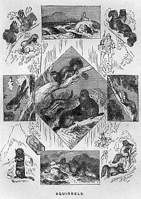 I have kept the Kangaroos to the last: not that they are the least interesting, but because these very singular animals are now so well-known, and their habits have been so often described, that it seems almost superfluous to say a word about them. I shall content myself with observing that the genus of the kangaroos has been divided into two sub-genera, the true Kangaroos, and those known as Kangaroo Rats. The difference, however, is not very great, since the rats are as mild and inoffensive in their habits as the kangaroos themselves. Of the kangaroo rats there are several species; but when we arrive at the true kangaroos we find a list altogether too numerous to mention. They are of all sizes, too, from that of the great giant kangaroo, that stands, or rather squats, full five feet in height, down to little tiny creatures not bigger than rabbits or squirrels. There are nearly fifty species in all inhabiting the known parts of the Australasian islands. It may be remarked, in conclusion, that two or three other kinds of pouched animals, differing from all the foregoing, have been lately brought to light by recent explorers; but, since nothing certain has been ascertained in regard to their habits, it would be idle in this place even to mention their names.