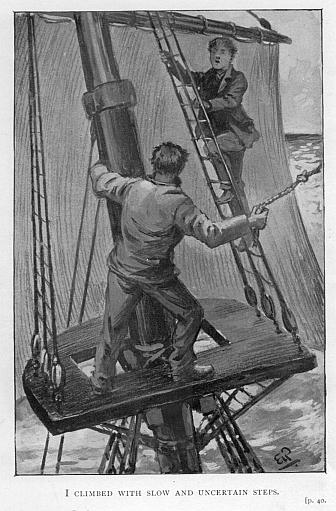 Now it so happened that for two weeks after I had set foot upon board the Pandora I had never been ordered aloft. I had not even had occasion to ascend the lower shrouds, though I had done so of my own will, as I was desirous of learning to climb. In all my life I had never been higher than the branches of an apple-tree; and since I had now chosen the sea for my profession—though I sadly repented my choice—I felt that the sooner I learnt to move about among the rigging the better.