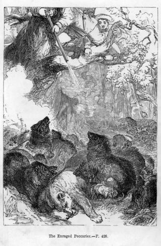 “Although we often afterwards met a few of the peccaries in our hunting excursions—and had the fortune to capture some of their young—they never from that time offered to attack us, but always endeavoured to escape. It is the nature of this animal to fight bravely with an enemy until conquered, when it will in future always run at his approach. In fact, there appeared to be but one herd of them in the valley; and as that had been nearly destroyed, we found them afterwards both scarce and shy.