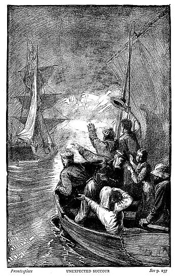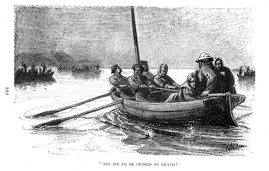 He waits not for the boat to come up, but plunging into the water, swims to meet it. Then clambering over the rail, he flings his arms wide open, to close, first around the young Englishman, then the American, but both in a like friendly, fraternal embrace.