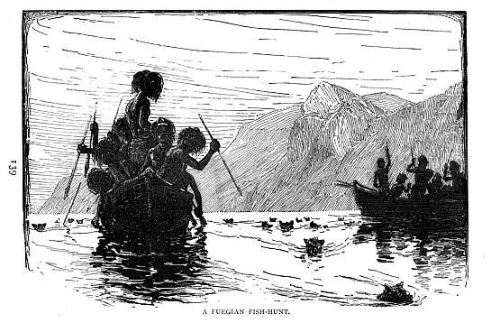At sight of the dreaded white—the Fuegian symbol of war—well may the boat-voyagers experience fear; for, from their former experience, they feel certain that this display must be intended as a warlike challenge.