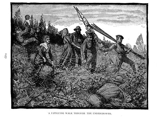 Notwithstanding all the hospitality extended to them, the castaways find the delay irksome, and are impatient to be gone. Glad they are when at length a shout heard from the hills announces the approach of the hunters; and still more gratified at seeing them issue from the wood, bearing on their backs the four quarters of a guanaco as large as a year-old bullock.