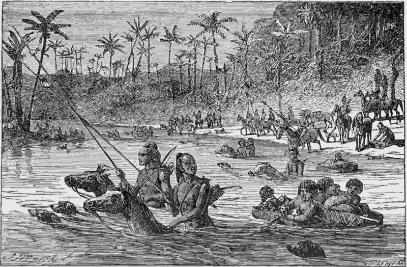 When first seen in this position he was on foot. It was in the year 1520,—before the Spaniards had set foot upon South-American soil,—and of course before the horse became naturalized to that continent. In less than thirty years afterward, he appeared upon these same cliffs bestriding a steed: for this noble animal had extended his range over the plains of America,—even at an earlier period than his European owner. When the Spaniards, in their after-attempts at conquering the Indians of the Pampas and those of the northern prairies, entered upon these great plains, they encountered, to their great astonishment, their red enemies upon horseback, brandishing long lances, and managing fiery chargers with a skill equal to their own!
