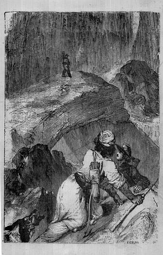 You will imagine that after such a perilous adventure in the great cave, they would never again set foot within its gloomy precincts. Neither would they, had any mode of escaping from their other prison—the valley itself—been offered. But they could think of none, and there still lingered in their mind some slight hopes that one or other of the many passages of the cave might lead through the mountains, or have an opening at the top of the cliffs.