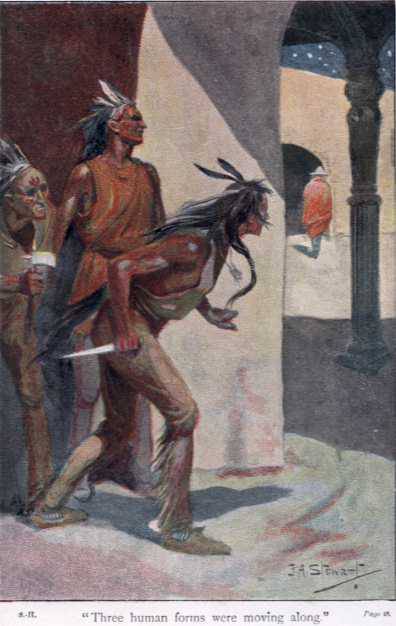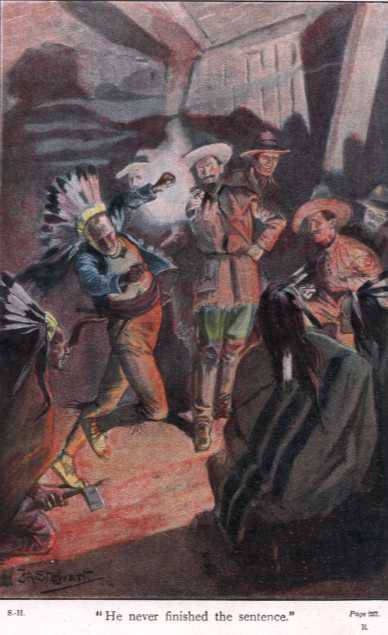 As I continued to gaze over the azoteas a terrific scene riveted my attention, and I forgot all others. Upon a high roof two men were engaged in combat fierce and deadly. Their brilliant dresses had attracted me, and I soon recognised the combatants. They were Dacoma and the Maricopa!