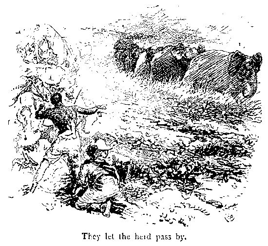 The cows and sheep are in charge of ten or a dozen dark-skinned herdsmen, most of them all but naked; while a like number of large wolfish-looking dogs completes the list of living things visible outside the waggons. But, were the end curtains raised, under their tilts would be seen women with children—of both sexes and all ages—in each the members of a single family, its male head excepted.
