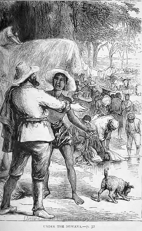 This they do as soon as culinary operations are ended, coffee being an accompaniment to the more substantial dishes. After which the white men of the party indulge in a “soupie” of brandeywyn (Note 7) winding up with a smoke; when all return to the tasks of the day. The children alone remain idle at play; some of the most courageous boys climbing up among the branches of the mowana, for the tempting fruit seen there. But the work of none is now of long continuance, only up till about twelve noon. Then it is necessarily suspended on account of the sultry heat, and all congregate under the mowana; the animals seeking shade beneath other umbrageous trees that stand by the side of their pasture ground.