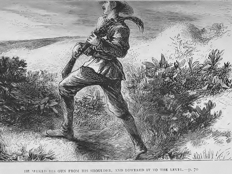 The rest did not retreat, but stood their ground, to all appearance more mystified than ever. They had heard thunder, and seen lightning, but never with an accompaniment of smoke, such as they now saw, wondering what it all meant. And while still unresolved, and hesitating how to act, the thick blue mist, which for a while had screened them, drifted aside, to be replaced by another and similar screen as the reloaded raw blazed forth again.