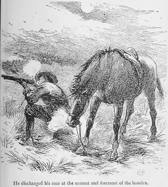 But before this, the Karl-kop had been permitted so depart in peace, without a shot fired at him, young Boers and all now desirous that he should go unscathed. Recalling the scare which the crocodiles had given them, they looked upon him in the light of an ally and avenger. So that without seeing, or having any suspicion of the danger so near him, he went away back upon the same spoor, to continue his lonely life and wanderings.