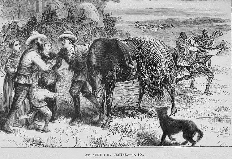 Retarded by these various obstructions, they made but slow progress; less than three miles an hour—the orthodox rate of speed made by South African travellers “on trek;” and it had come to be a struggle painful as it was perilous. Fearfully dispiriting too; since they knew not when or how it was to end. Their sole hope rested on a large pond or lake their guide told them of, and which he had never known to go dry. But it was still over ten miles distant, which meant at least four hours of time—an appalling prospect in their then condition; men, horses, and oxen, all athirst, all tottering in their steps. There was no help for it, no alternative, but keep on; and on they kept.