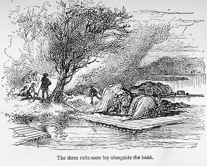 While it was in progress, those left behind had remained inactive, as there was nothing for them to do. Should there be no more stream, there could be no further navigation, and again taking the rafts to pieces would be so much labour lost. In this uncertainty, even their lading was left undisturbed; only such chattels carried on shore as were needed for a camp of temporary occupation. Nor did any of the people, white or coloured, elect to sleep on land, having by this time discovered the be a better place. Upon it they were less exposed to the torture of mosquitoes, to avoid which, the rafts were each night drawn out to some distance from the beach, and there brought to anchor. So shoal was it all round, they had no difficulty in communicating with the shore whenever desirable.