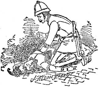 This was not only embarrassing, but positively painful. There was a bump on my forehead, the rim of my hat was crushed, my new suit was soiled, my knee ached like Jericho, and there was a rent in my pantaloons right opposite where my knee hurt.