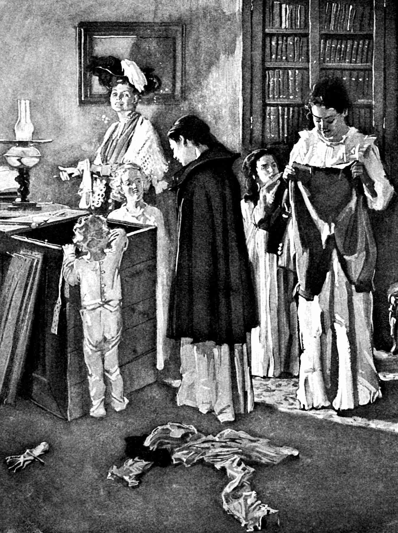 [Pg. 12]She looked at Aunt Anne. That severe lady had dropped her book and, seized by the contagion, was shaking with silent laughter.