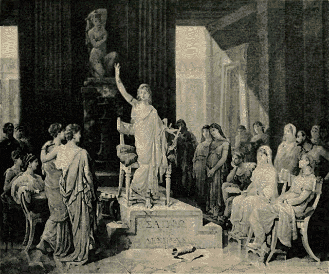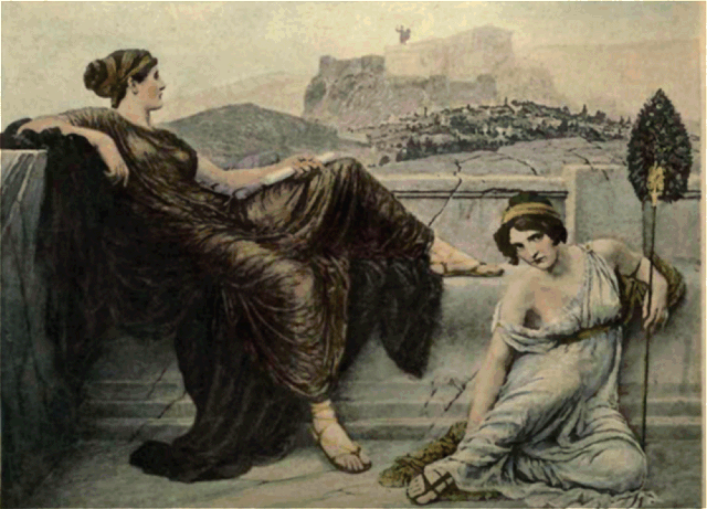 Athens was the chief city among the Ionian peoples, but it developed a civilization peculiarly its own, known as the Attic-Ionian, combining much of the rugged strength and vigor of the Dorians with the refinement, delicacy, and versatility of the Ionians. Yet the status of woman in the city of the violet crown was a reproach to its otherwise unapproachable preeminence. Nowhere else in entire Hellas were Greek women in like measure repressed and excluded from the higher life of the men as among the Athenians. Consequently, the name of no great Athenian woman is known to us. But the Ionian repression of women of honorable station led to the rise of a class of "emancipated" women, who threw off the shackles that had bound their sex and united their fortunes with men in unlawful relations as hetæræ, or "companions." Owing to their pursuit of the higher learning of the times and their cultivation of all the feminine arts and graces, the hetæræ constituted a most interesting phenomenon in the social life of Greece, and played an important role in Greek culture, especially in Athens. As the centre of culture for Hellas, and as the exponent of literature and art for the civilized world, Athens demands especial attention in its treatment of women.