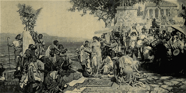 This last reflection leads us to the most important difference between ancient and modern conceptions, that in regard to the relations between the sexes. We of the Christian era have a clear doctrine of right and wrong to guide us, a law given from without ourselves, the result of revelation. The Greeks, on the other hand, "had to interrogate nature and their own hearts for the mode of action to be pursued. They did not feel or think that one definite course of action was right and the others wrong; but they had to judge in each case whether the action was becoming, whether it was in harmony with the nobler side of human nature, whether it was beautiful or useful. Utility, appropriateness, and the sense of the beautiful were the only guides which the Greeks could find to direct them in the relations of the sexes to each other." Hence we find that the Greeks deemed permissible much which offends the modern sense of propriety; for example, when maidens captured in war became for a time the concubines of the victors, as Chryseis in the Iliad, and were afterward restored to their homes, they were not thought in the least disgraced by their misfortune; "for if such a stain happen to a woman by force of circumstances," says Xenophon, "men honor her none the less if her affection seems to them to remain untainted."