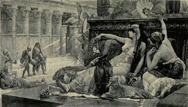 Antony was completely fascinated with her charms. Her beauty, her wit, and, above all, the tact, adroitness, and self-possession which she displayed in consenting thus to appear before him, forced him to yield his heart almost immediately to her undisputed sway. Cleopatra remained at Tarsus for some time, in an incessant round of gayety and revelry, and by her flatteries and caresses she prevailed on Antony, forgetful of his wife Fulvia and his duty as a Roman, to spend the winter at Alexandria, where the pair engaged in continual feastings, spectacles, and sports, as well as in every species of riot, irregularity, and excess. It is not our purpose to follow the well-known career of Cleopatra during these years of turmoil, or to dwell on the circumstances that caused her to prove the destruction of Antony's hopes at the battle of Actium; neither shall we describe in detail those closing days when both committed suicide rather than suffer the consequences of humiliation and defeat.