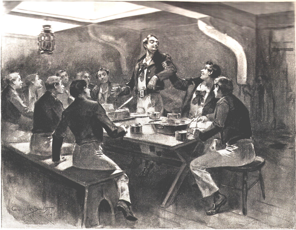 Dinner was served promptly in the steerage, and by that time “Old Wagoner” was dashing along in great style, with every sail drawing like a windlass.