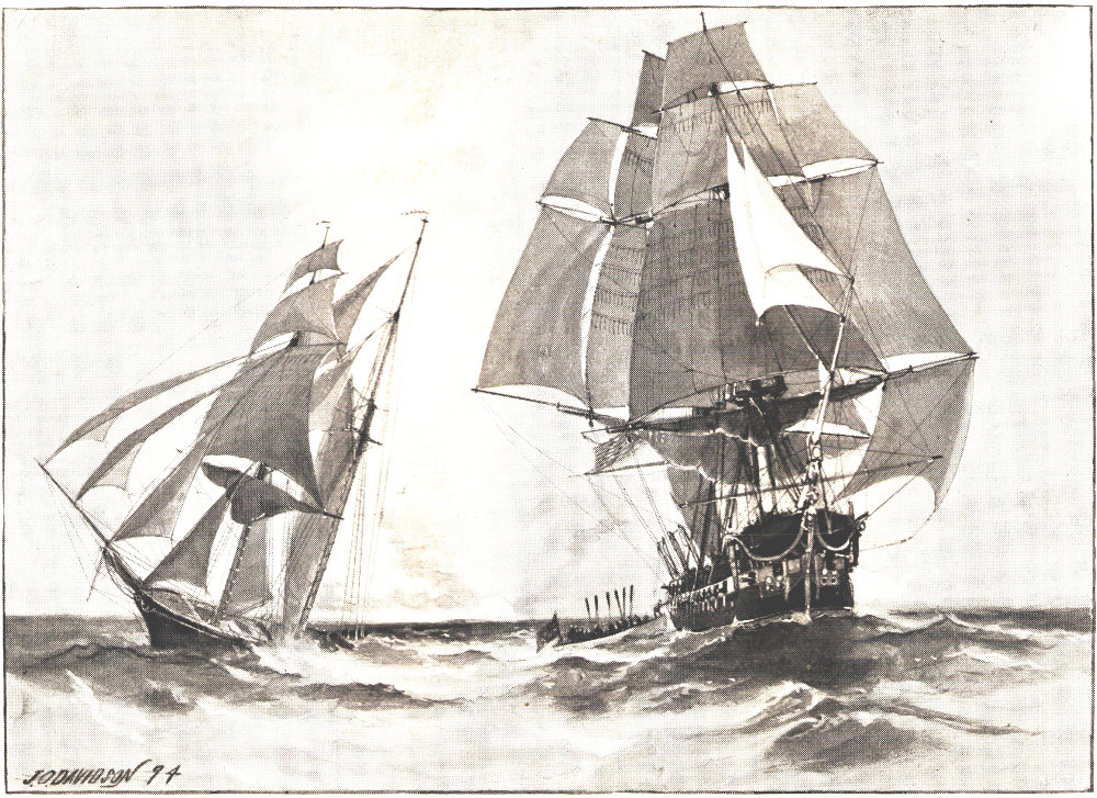 “Mr. Ross,” said Commodore Barry, turning to his first lieutenant, “we will show French colors; if he is a ‘Mounseer,’ it will encourage him to make our acquaintance.”