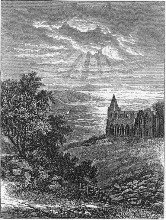 Chateaubriand celebrates Velleda, the last of the Druidesses of Sein, tall in stature, her eyes blue, with long fair floating hair, dressed in a short black tunic, without sleeves, bearing a golden sickle suspended from a brazen girdle, and crowned with a branch of oak. Here King Arthur was brought by Merlin to recover of his wounds. The inhabitants of the island were celebrated for their ferocity as wreckers.
