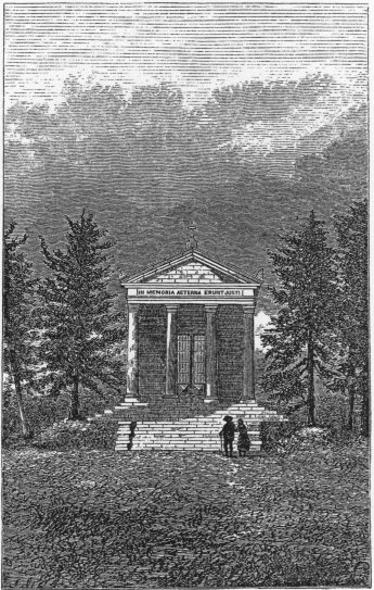 The next morning we set out for the dockyard. To obtain admission, it first requires a letter from the English Consul, who lives in a charming spot overlooking the sea, at the foot of the Montagne du Roule. Furnished with this, we repaired to the Préfet Maritime, who gave us an order to be presented [pg 003] at the dockyard gate, where it was countersigned, and a guide appointed to show us over the establishment. We made the tour round all the basins and workshops, and saw the canot impérial used by the Emperor on the visit of our Queen,—a most elegant boat, beautifully carved with marine subjects. The model of a Roman trireme, or galley, is in one of the basins, and in the little museum, or Salle des Modèles, are the two flagstones that covered the grave of Napoleon, and were deposited here by the Prince de Joinville, when he returned with the Emperor's remains from St. Helena. The dockyard partly stands on a spot called Chantereyne. The Empress Matilda, fleeing from Stephen, was overtaken by a tempest when making for Cherbourg, and vowed, if her life were spared, to build a church. The ship was in jeopardy, but the pilot cheered her spirits, and, when gaining the port, exclaimed, "Chantes Reine! we are safe in harbour." The place where she landed has always retained the name; and here the Empress, in fulfilment of her vow, founded an abbey, which was destroyed in the Revolution. The habitations of the nuns is the present provisional Hôpital de la Marine; a new one, containing above a thousand beds, being in course of construction, and a modern church, called Eglise du Vœu, has been erected in another part of the town in place of that of the Empress Matilda.