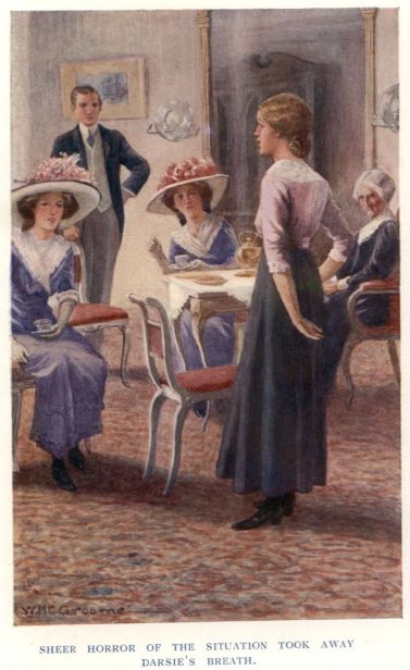 Some inherent quality in Darsie—some grace, some charm, some spell—which she wove over the eyes of beholders, caused them to credit her with a beauty which she did not possess. Even her family shared in this delusion, and set her up as the superlative in degree, so that “as pretty as Darsie” had come to be regarded a climax of praise. The glint of her chestnut hair, the wide, bright eyes, the little oval face set on a long, slim throat smote the onlooker with instant delight, and so blinded him that he had no sight left with which to behold the blemishes which walked hand in hand. Photographs valiantly strove to demonstrate the truth; pointed out with cruel truth the stretching mouth, the small, inadequate nose, but even the testimony of sunlight could not convince the blind. They sniffed, and said: “What a travesty! Never again to that photographer! Next time we’ll try the man in C— Street,” and Darsie’s beauty lived on, an uncontroverted legend.