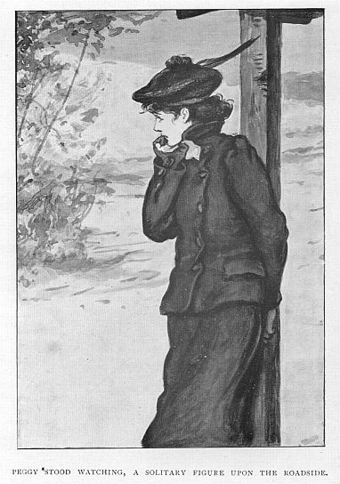 They stared with troubled eyes at the little figure which stood with its back turned towards them, in an attitude of rigid stillness. There was something pathetic about that stillness, with just the flutter of the tell-tale handkerchief, to hint at the quivering face that was hidden from view. The hearts of Peggy’s companions were very tender over her at that moment; but even as they planned words of comfort and cheer, she wheeled round suddenly and walked back to meet them.
