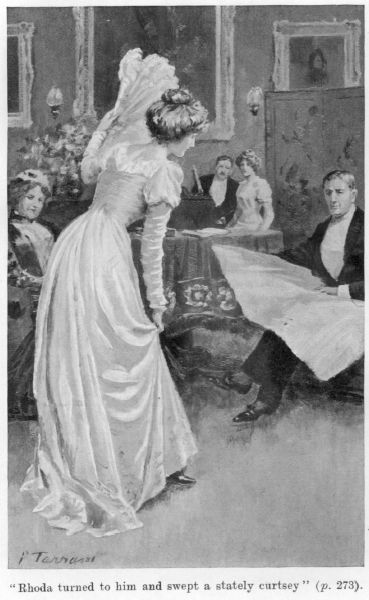 She looked up at him, half shy, half laughing, and there was silence in the room while each of the onlookers felt a thrill of unexpected emotion. It was like looking on at the turning point in a life, and the girl was so beautiful in her fresh young bloom that it was impossible to behold her unmoved. The coiled-up hair showed the graceful poise of her head, the shoulders were smooth and white as satin, the blue eyes had lost their hard self-confidence, and shone sweet and true. Yes! Rhoda was going to be a beautiful woman; she was one already, as her father realised, with a natural pang of regret mingling with his pride. His eye softened as he laid his hand on her shoulder.