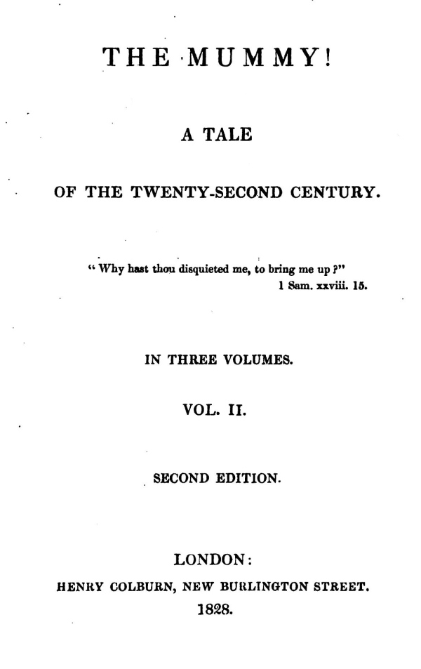 [Transcriber's note: The Mummy! was originally published in three volumes. The chapters have been renumbered in this edition, and the volume breaks indicated (ends of chapters XI and XXIV).]