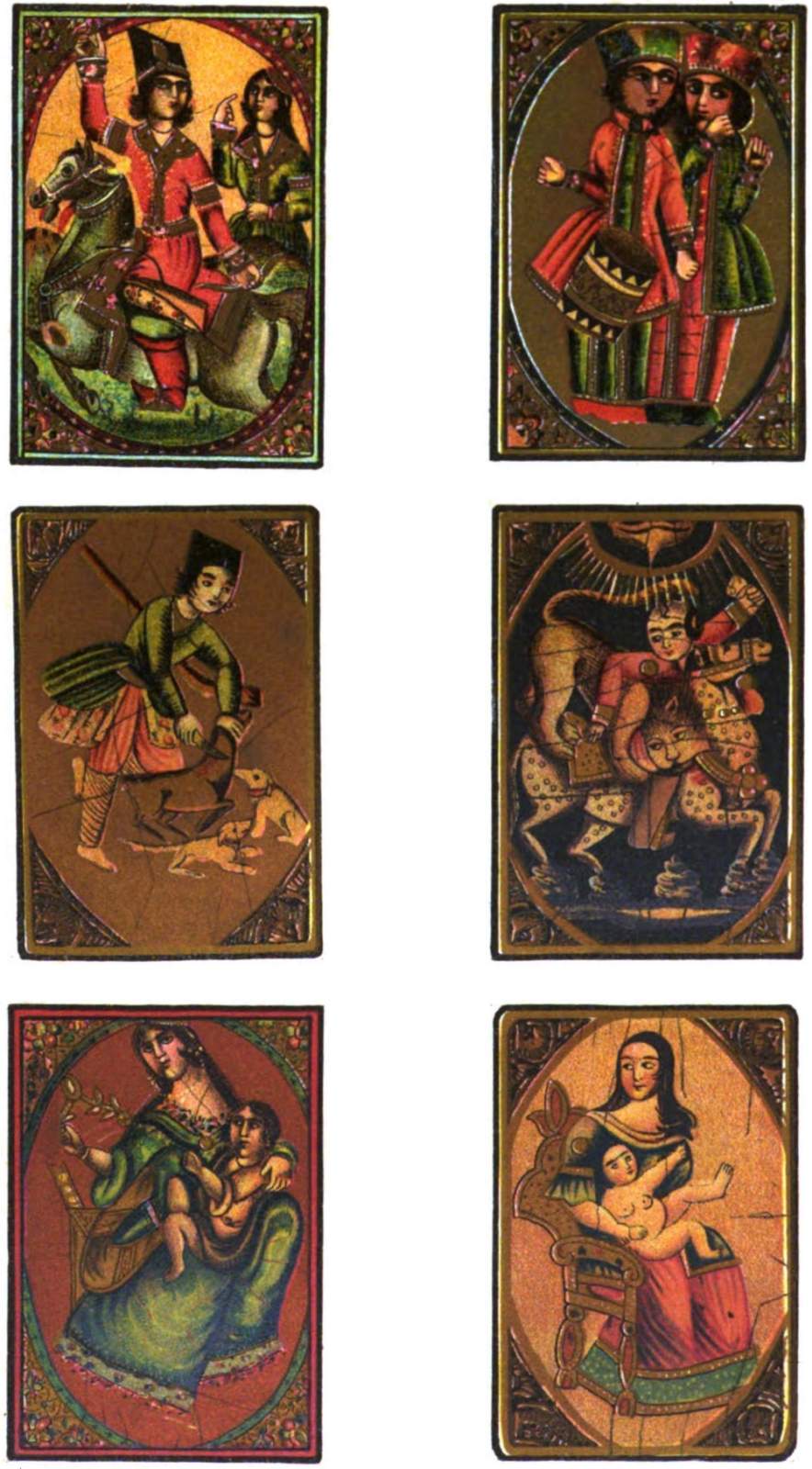 One writer has described a visit to a temple in Thibet, in which he found among other[Pg 187] decorations “a couple of old playing-cards,”—the Knave of Hearts and the Ace of Acorns. Whether these were worshipped by the natives or considered as decorations, he could not discover.