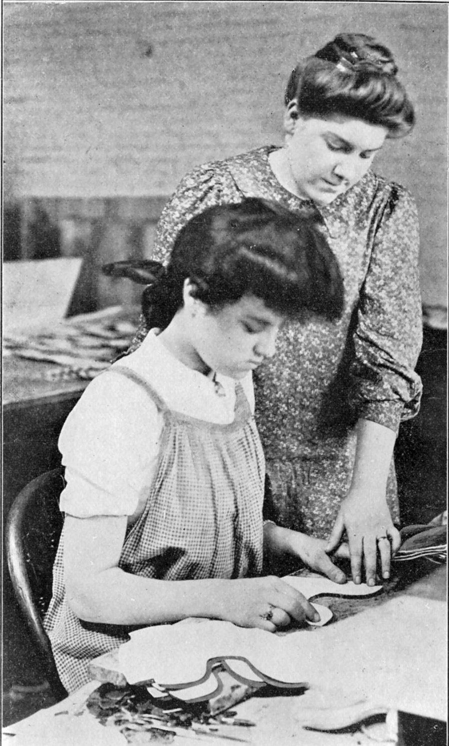 She nods, without stopping. She is a "remarkable fine hand." She makes forty cents a day. See the value of this labour to the manufacturer—cheap, yet skilled; to the parent it represents $2.40 per week.