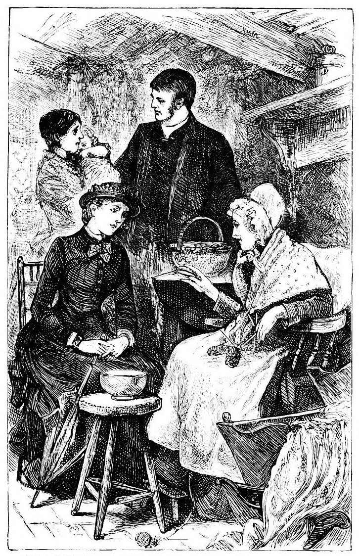 And by-and-by it came to pass that these two met not unfrequently upon the roads, and sometimes in the cottages where Mary was often a visitor. She went there sometimes on charitable errands, and sometimes from mere kindness and liking for the good people, whom she had known all her life. The charity was not Mary’s charity, it need hardly be said, for she had nothing of her own to give. Mrs. Prescott was not rich nor{37} very interesting, nor a woman who talked much on any subject, especially upon that of the poor and their claims: but she had a kind heart. When there was a very nice pudding at luncheon, she almost always remembered that poor Sally Williams, who was in “a deep decline,” and had no appetite, might be tempted by a bit of it, or if the chicken was very tender, she felt sure that old John Price, who had lost his teeth, or Mrs. Sims at the almshouses, would like it. “I will just put this nice little piece in a dish, and you will run down to the village with it, Mary,” she would say, “as soon as you have finished, my dear.”