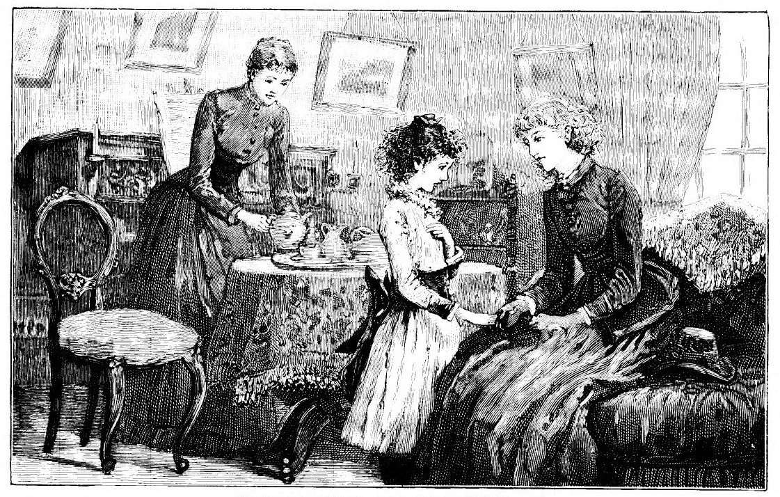 RHODA’S sitting-room was very warm and pleasant and quiet, the safest and most comfortable place—the fire lighting it up with fitful gleams, the windows still glimmering between the curtains with the dim twilight which had not turned to dark, the pictures and mirrors on the walls giving forth gleams of ruddy reflection. There were no longer flowers outside to brighten the prospect, but within groups of plants in every corner, and a tall pot of creamy, fragrant narcissus spreading its delicate spring scent through the room. The warm flicker of the firelight seemed to draw out the sweetness of the flowers, the deeper tints of colour, the reds and browns of the furniture. There could not have been a woman’s apartment more entirely breathing of women, and{370} of comfort, and tranquillity, and peace. Hetty lay on the sofa near the fire, the ruddy glow shedding a pink colour over her still pale face. Rhoda sat at her feet, leaning against the sofa, holding up her eager little face, asking questions in her eager way about Hetty’s home, about the children, about baby, who was so funny. “Oh! I wish I could see him. Oh, I wish I could go and play with them all!” Rhoda said. Hetty, who had been removed here in her mother’s absence to join the little party once more, in the sweetness of that convalescence, which was almost more than coming back to health, lay smiling, answering the child’s questions in a little broken voice of weakness and happiness. Miss Hofland sat on a low chair by the fire, going through her usual little calculations, setting down all the comforts on one side against the very curious condition of this house on the other. All these things that had happened were very mysterious. The whispers of the maids, which could scarcely fail to reach her, were full of suggestions. It was not pleasant to live in a house where such strange things were{371} heard and seen; but then, on the other hand, it was very comfortable. There was scarcely anything one wanted that one could not have. In some families the treatment was very different. She was putting these things meditatively against one another when the servant came in with the lamp. There was an abundant supply of light, as of everything else—no stint of anything—lamps and candles, it did not seem to matter how many were used. It was very comfortable, enough to make up for the many unpleasant circumstances which did not after all touch either her pupil or herself.