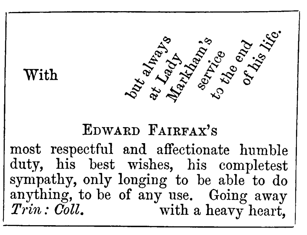 “You will give them that, and tell them—but there is no need for telling them anything,” Fairfax said with a sigh.