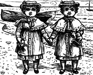 [18] And, oh, how happy the two were when they found themselves out on the shore all alone! They were so happy, they did not know what to do; so first of all, they ran races to run away a little of the happiness. And when they had run themselves quite hot, they sat down on a little heap of stones to consider what they should do next. They had no spades with them, for they did not care very much about digging; children who live always by the sea never care so much about digging as the little visitors who come down in the summer, and whose very first idea at the sight of the sea is "spades and buckets."