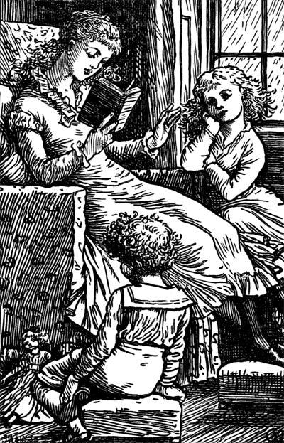 Auntie smiled at the children. They looked so pleased and interested, it was evident that for the time they had forgotten their sorrow and anxiety. Suddenly, just as she was thinking sadly how soon it must return to their minds, there came a loud ring at the bell. They all started, they had been sitting so quietly.
