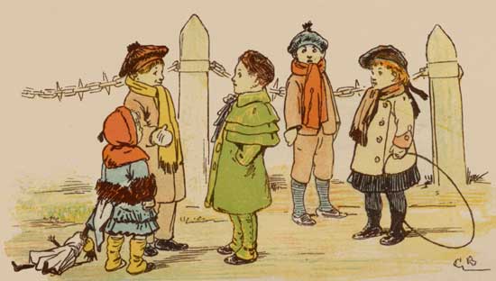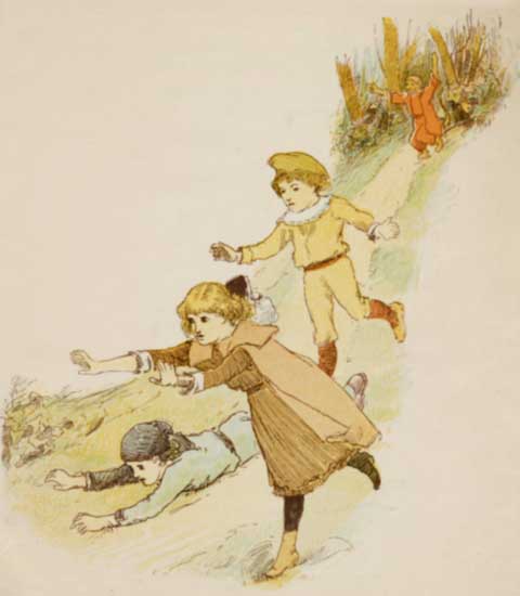 A group no longer—with a scream, or three screams joined into one, the children had turned and fled. How they got through the thick growing bushes without being torn to pieces I am sure I cannot tell. Fear lends wings, I suppose. However that may be, I know it was in a wonderfully short time that they found themselves, panting and shaking, breathless and trembling, but safe, inside the shelter of their own garden gate.[Pg 92]