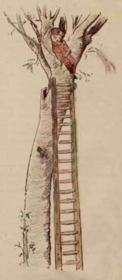 "I was just thinking, when Him's done down here, you know, and wants to go up there again, what a very long ladder Him must need."