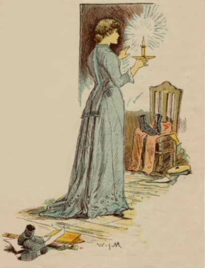 The summer day passed quickly. Sweet-tempered Madeleine soon forgot the offence she was only too ready to forgive, and in merry play with some little friends, the troubles of the morning were quickly out of mind. Tired with fun and excitement, Fifine fell asleep the moment her head touched the pillow. She had slept several hours when she suddenly woke. It was quite dark—the very middle of the summer night—at first not a sound broke the silence. Then faintly, but distinctly, came through the half-opened window a low piteous wail—again and again. Fifine sat up to listen. There was no sound from the larger room next door, where Madeleine slept beside the nurse. No one was awake but Fifine, and again, and again came that pitiful mew. Yes, it was a mew, and up jumped Fifine at last.