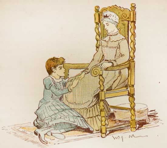 "A little bird indeed," repeated five years old Fifine to herself contemptuously. "That is what they tell babies. I know better. A little[Pg 16] bird only means 'somebody' told. Besides, there are no nests on that side of the house. Who could it be? Mimi, tell me, don't be stupid now. Who do you think it was?" and as Mimi made no reply, Fifine shook her, which drew forth a plaintive squeak and a struggle to get out of her mistress's arms. This made Fifine still more angry. She flung Mimi down, the poor cat—for a worm will turn—glowered up at her, with a rather ugly look in her green eyes, and slunk off.