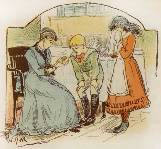 Lilly was not in her first sleep—she was too unhappy to fall asleep as quietly as usual—when a tap at the door made her jump up. There stood her brothers, and behind them Mamma, smiling with pleasure, and for a minute or two Lilly's delight almost stupefied her. She could scarcely believe it was her own dear watch that Bill held out, and when she did believe it, she could not kiss and thank him and Humphrey enough.