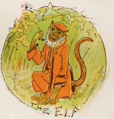 And sure enough there "he" was, and just exactly as Nora had described him. A tiny dark-brown creature, like a wee old man, with a little red jacket, and a small red skull-cap on the top of his head. He seemed to have come up suddenly from among the bushes; he was holding the branch of a blackberry tree in one hand, and with the other greedily plucking and eating the fruit as fast as he could.