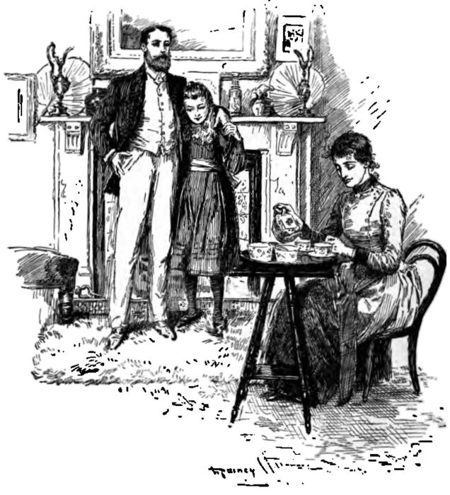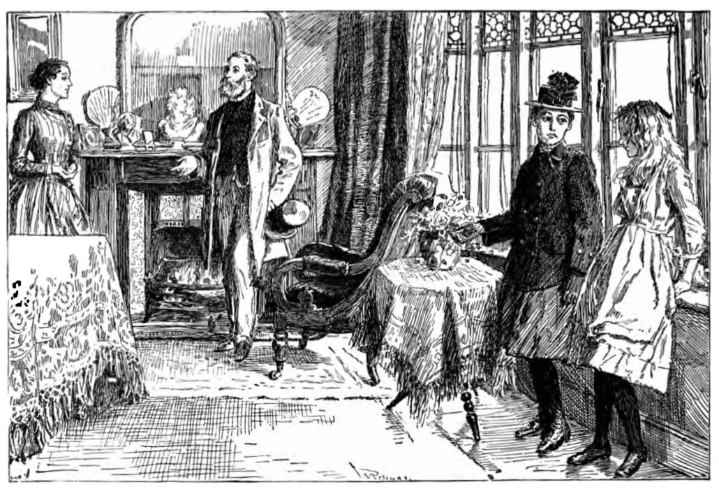 “Connie!” he exclaimed; “my child, keep out of the draught. Well, dear,” when he had come in and was standing by me in the hall, where a bright little fire was burning—we have such a nice hall in our house, old-fashioned and square, you know, with a fireplace—“well, dear, how are you? And what have you been doing with yourself this dull day?”