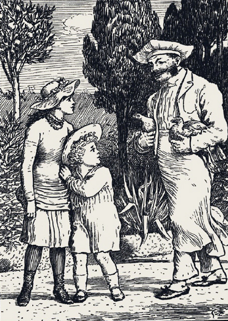 "Him sawed the pitty little girl," he said; "her was looking at the shiny glasses—always—her was keeping them for him. Him asked her to. Then him touched them; him climbed up on a chair in the shop and touched them, and then him showed all him's pennies to the old man; but the lady wif the baby knowed the best what him wanted. Her were very nice, but the pitty little girl were the goodest, weren't her?"