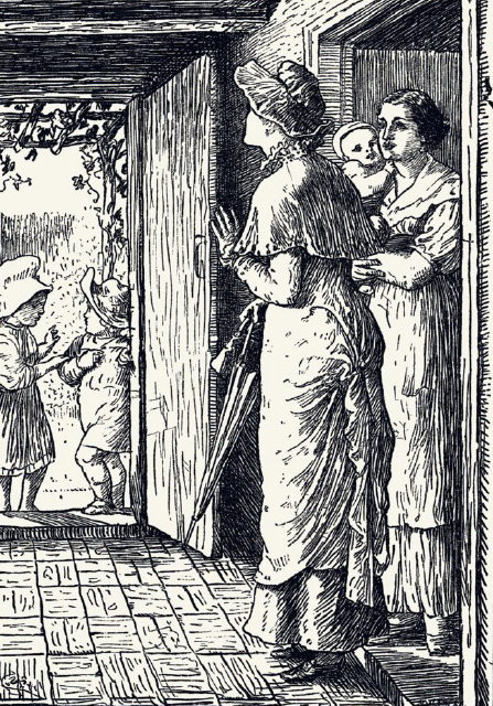 "I don't think the jugs are dear," she said, with a smile, turning to the young woman, who looked pleased. "And some day," she went on, "we will come to see you, and bring you some little thing for your little girl, as you have been so kind to my little boy. Come now, Baby dear, we must get home as quick as we can."