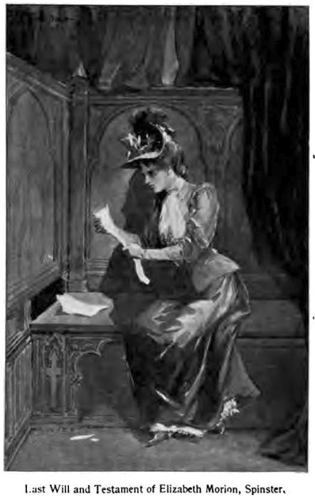 At the first glance there was nothing to be seen. The panel in falling flat had covered the contents of the little receptacle. But as she put in her hand to draw it upwards again, she caught sight of something white lying beneath. Another moment and she drew out a lone narrowly folded parchment document, on which, to her unmitigated amazement, were inscribed in crabbed old-fashioned letters, the words: “Last Will and Testament of Elizabeth Morion, spinster,” with the date.